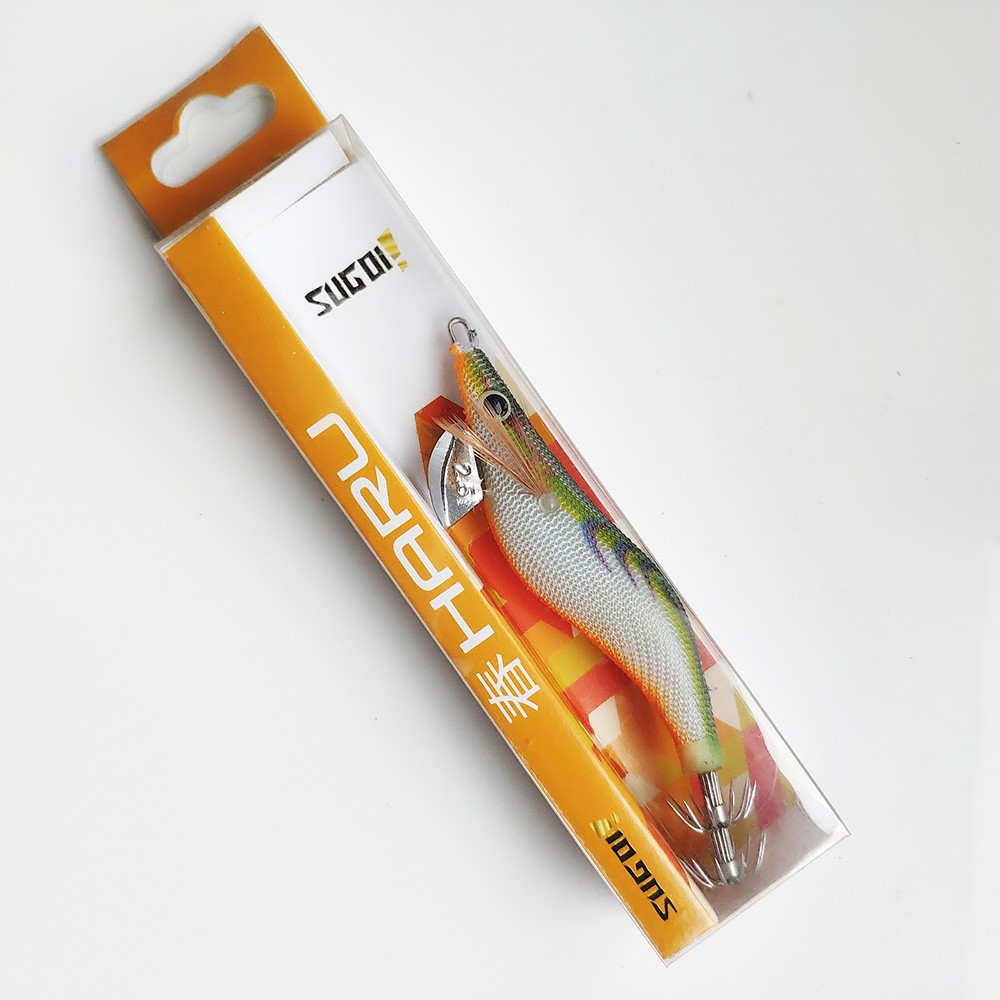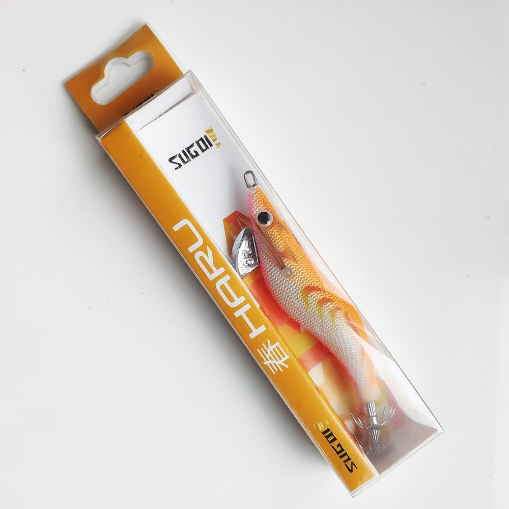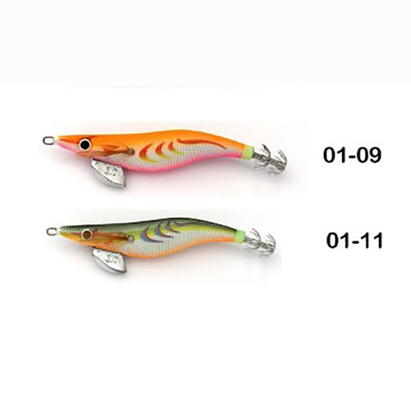 Estos señuelos de altísima calidad para la pesca del calamar montan una doble corona de anzuelos muy afilados, y grandes ojos en 3D.